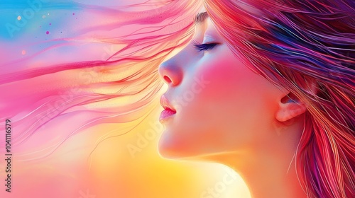watercolor, portrait, woman, soft, reddening, tone, flowing, hair, serene, tranquil, delicate, pastel, artistic, painting, beauty, grace, elegance, feminine, gentle, peaceful, calm, dreamy, artwork, aethereal