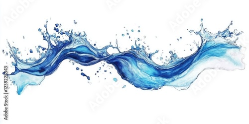 Serene Watercolor River: Flowing Blue Hues and Splashes Captured in an Abstract Hand-Drawn Illustration