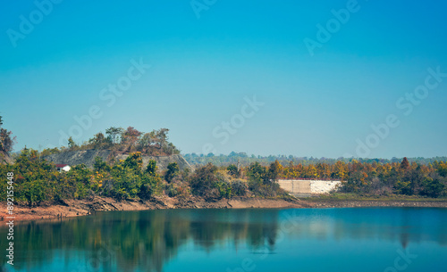 serene waterscape of large lake created for Purulia pumped storage project (upper dam) in the vicinity of Ajodhya Hills. The lake is also the major source of water in arid regions of Purulia.