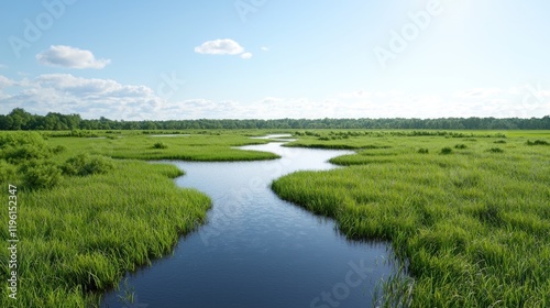 marsh, swamp, wetland, river, creek, water, grass, vegetation, nature, landscape, scenery, environment, eco, ecology, wildlife, habitat, green, summer, daytime, sun, sky, cloud, horizon, rural, outdoors, natural, beautiful, scenic, peaceful, tranquil, serene, calm, quiet, still, bright, clear, fresh, clean, vibrant, lush, abundant, growth, flora, ecosystem, conservation, preservation, wild