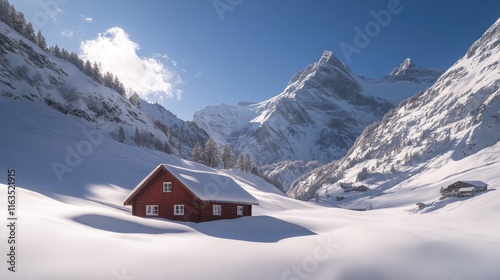cabin, mountain, snow, winter, alps, landscape, nature, scenic, red, house, tree, white, cold, frigid, snowy, peak, hill, vale, idylli, peaceful, serene, tranquil, calm, quiet, stillness, solitude, remote, isolated, rural, rustic, charming, picturesque, breathtaking, magnificent, stunning, beautiful, wonder, wonders, heavenly, alpine