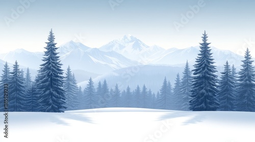 Serene Winter Landscape Snow-Covered Forest and Majestic Mountains