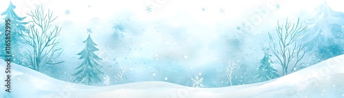 winter, landscape, snowy, hill, tree, snow, christmas, tree, fir, pine, branch, bare, blue, teal, water, white, cold, icy, frigid, glacé, peaceful, serene, calm, quiet, tranquil, still, wintery, snowflake, star, mountain, horizon, sky, art, watercolor, painting, illustration, design, background, aesthetic
