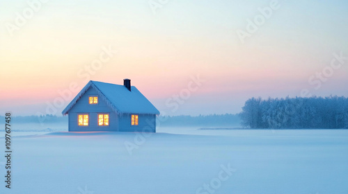 serene winter scene featuring a snow-covered landscape illuminated by soft, ambient light with ample empty space, perfect for overlaying text, evoking tranquility, nostalgia, and seasonal joy