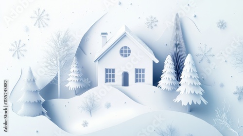 Serene Winter Wonderland: A Papercut House in a Snowy Landscape