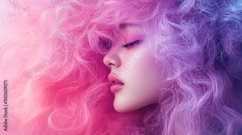 Serene Woman with Pink and Purple Hair, Close-Up Portrait