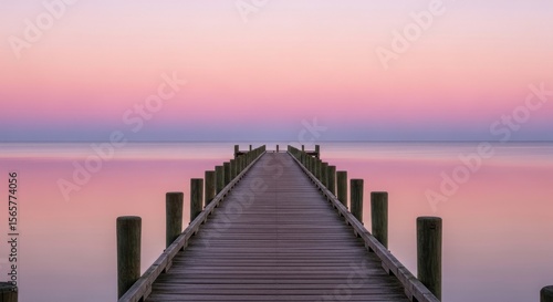 pier, wooden, water, sea, ocean, sunset, sunrise, pastel, sky, calm, tranquil, peaceful, serene, horizon, landscape, seascape, dock, breakwater, plank, wood, post, perspective, leading, line, symmetric, symmetry, nature, outdoors, travel, destination, vacation, relaxation, pink, purple, blue, gradient, soft, light, dreamy, aethereal, quiet, solitude, escape, idylli, scenic, beauty, beautiful, peacefulness