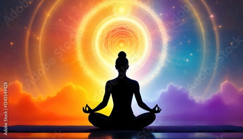 yoga, meditation, silhouette, sunset, mandala, spiritual, peace, serenity, calmness, mindfulness, energy, zen, calm, relaxation, artwork, graphic design, digital artwork, illustration, wallpaper, background, poster, print, home decor, inner peace, well-being