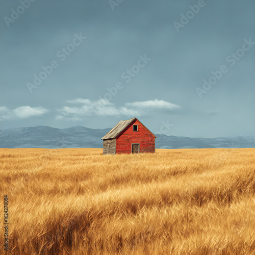 Serenity in the Countryside: A Picturesque Barn Nestled within a Vibrant Golden Wheat Field Capturing the Essence of Rural Tranquility at Dusk