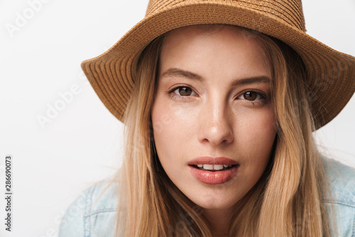adult, attractive, background, beautiful, casual attire, caucasian, confident, female, fresh, girl, good, isolated, natural, person, portrait, pose, positive, pretty, space, style, stylish, trendy, woman, young, youth, teenage, teenage, white, cute, hat, blond, blond, silence, gesture, serious, advertising, advertisement, closeup, camera