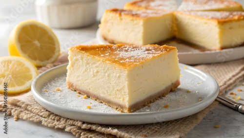 Sernik, the traditional Polish cheesecake presented in thick slices with a pale creamy interior and a subtle golden top