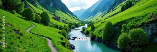 photo, stock, mountain river, overview, aerial view, drone, texture, image, perspective, mountain, geology, flowing, photo, landscape, aerial, curve, mountain, high altitude, vale, nature, aerial photography, river, stream, bend, topographic, geography, water, winding, green, hill
