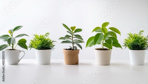 Set 3 of Green plants in potted for interior decoration isolated on white background