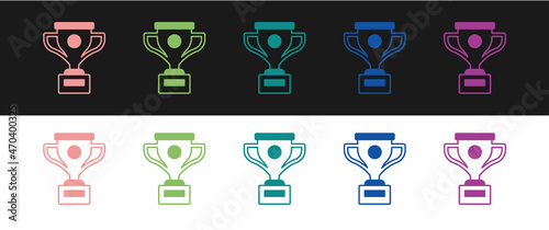 Set Award cup icon isolated on black and white background. Winner trophy symbol. Championship or competition trophy. Sports achievement sign. Vector