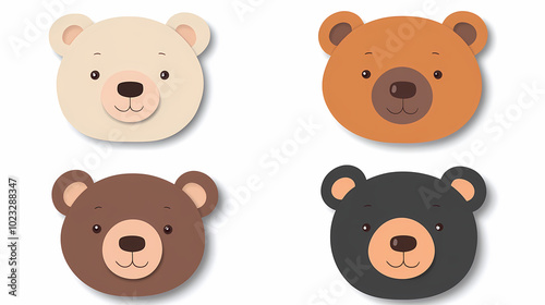 Set Bear card templates. Cute cartoon bear faces,paper art and digital craft style.