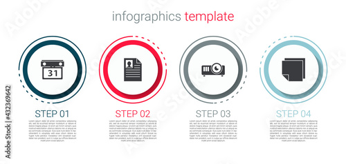 Set Calendar, Resume, Movie, film, media projector and Post note stickers. Business infographic template. Vector