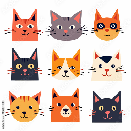 cat, animal, cartoon, vector, adjusting, illustration, icon, pet, dog, pretty, kitten, head, fun, fox, baby, pig, collection, character, face, mammal, tiger, conception, art, cow, model