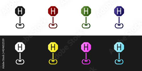 Set Hospital road traffic icon isolated on black and white background. Traffic rules and safe driving. Vector