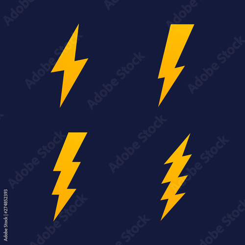 Set Lightning bolt. Thunderbolt, lightning strike. Modern flat style vector illustration
