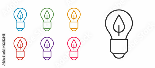 Set line Light bulb with leaf icon isolated on white background. Eco energy concept. Alternative energy concept. Set icons colorful. Vector