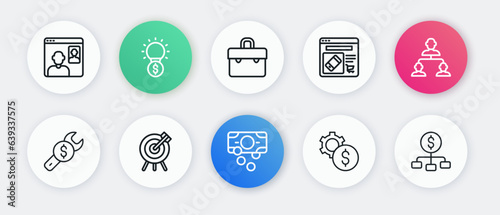 dollar, cash, paper, stack, finance, employee, business, organisation, chart, structure, vector, icon, isolated, set, line, linear, contour, outline, money, wrench, setting, financial, tool, currency, bank, wheel, cog, cogwheel, laptop, computer, browser, cyberspace, shopping, case, bag, portfolio, diplomat, suitcase, investment, signs, symbol, target, strategy, arrow, success, competition, video, work
