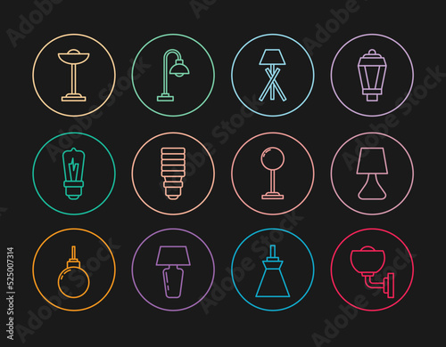 Set line Wall lamp or sconce, Table, Floor, LED light bulb, Light, and icon. Vector