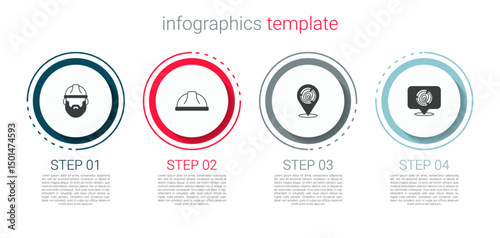 Set Lumberjack, Worker safety helmet, Wooden logs and . Business infographic template. Vector