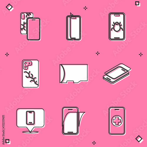 screen, smartphone, broken, mobile, technology, mobile phone, phone, device, smart, display, vector, icon, isolated, set, pink, white, touch, protection, system, virus, cyber, security, safety, secure, mobile phone, phone, digital, repair, fractured, crash, memory, card, micro, datum, storage, guardian, privacy, guard, accessory, background, lcd, service, maintenance, adjusting, setting, fixing, cover, illustration