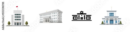 Set of Government Office Buildings isolated on transparent background