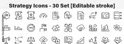 Set of 30 outline strategy icons. Line art icon collection. Editable stroke. Vector illustration