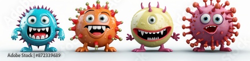 disease, virus, cartoon, cute, three-dimensional, isolated, microbe, health, microbiology, illustration, character, infectious, medicals, pandemic, funny, microbiota, germ, mobile phone, science, microbiological, outbreak, epidemic, microscopic, biology, infection, viral, bacterial, health care, design, animal, fun, monster, icon, element
