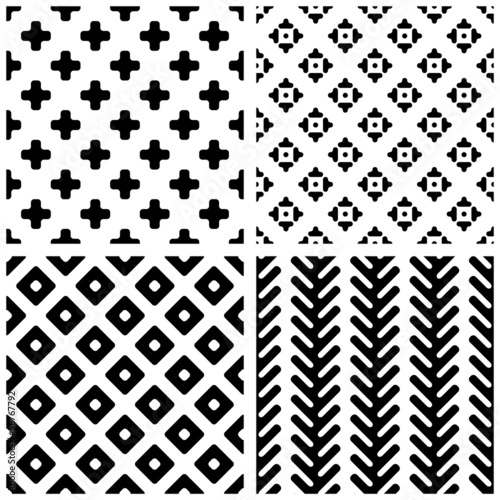 Set of 4 monochrome geometric seamless patterns.