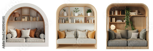 Set of A cozy reading nook with a cutout double seat sofa isolated on transparent background