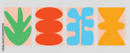 Set of abstract colorful cover background. Collection of plants, leaf branch, coral, vase in hand drawn style. Contemporary aesthetic illustrated design for wall art, decoration, wallpaper, print.