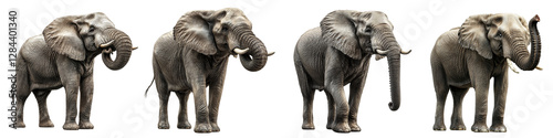 set of An elephant holds its trunk high, an elephant stands with its trunk high, a view of an elephant holding its trunk high, an elephant's proud trunk, a elephant, on a transparent backgrounds