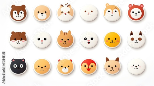 Set of animal faces, face emojis, stickers, emoticons,cartoon funny mascot characters face set