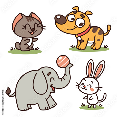 cartoon, animal, animal, set, vector, illustration, cat, dog, baby, rabbit, funny, pig, pet, tiger, elephant, collection, cow, zoo, bear, character, cute, wild, icon, safari, fun