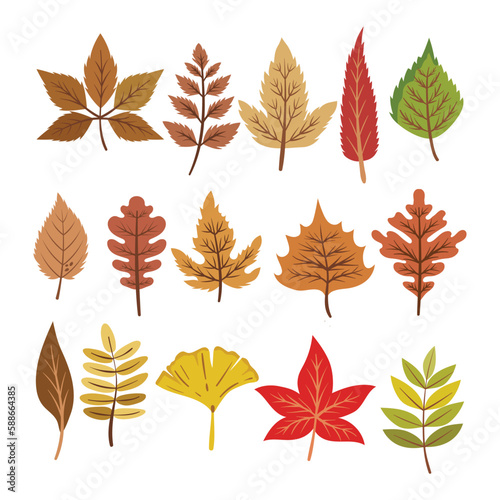 Set of autumn leaves element vector collection. Autumn leaves flat design illustration.