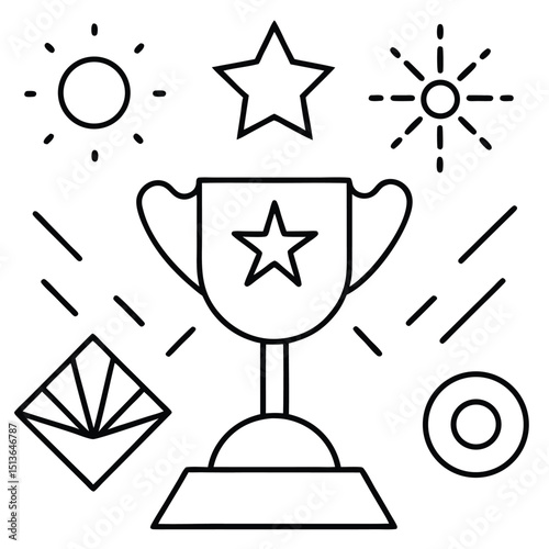 Set of Award Trophy and Achievement Icons in Minimalist Line Art Style for Success, Competition, and Victory Concepts