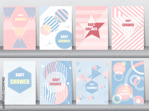 Set of baby shower card on retro pattern design,vintage,poster,template,greeting,Vector illustrations