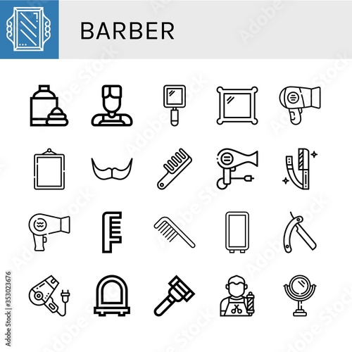 barber, icon, set, vector, mirror, shaving, cream, hand, hair, dryer, moustache, comb, razor, illustration, symbol, signs, background, care, salon, isolated, beauty, design, handle, fashion, black, style, haircut, hairdresser, flat, man, health, white, equipment, glamour, concept