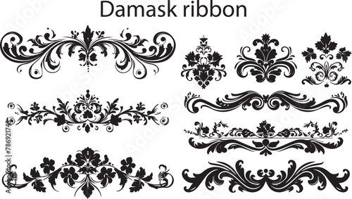Set of Beautiful and Attractive Silhouette Damask Ribbon vector illustration.