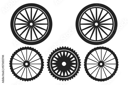 wheel, illustration, vector, tire, spoke, bicycle, bike, symbol, mountain, sport, tyre, circle, silhouette, speed, ride, part, rim, cycle, isolated, black, icon, graphic, race, transport, transportation, vintage, design, vehicle, retro, old, pattern, object, round