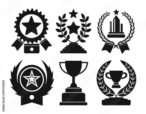 trophy, award, cup, sport, competition, achievement, victory, winner, success, celebration, design element, silhouette, vector, black-and-white, graphic design, monochrome, illustration, champion, medal, prize, recognition, awards ceremony, vector graphics, contest, icon, logo design