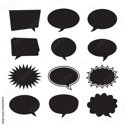Set of Black Blank Speech Bubbles and Comic Explosion Shapes