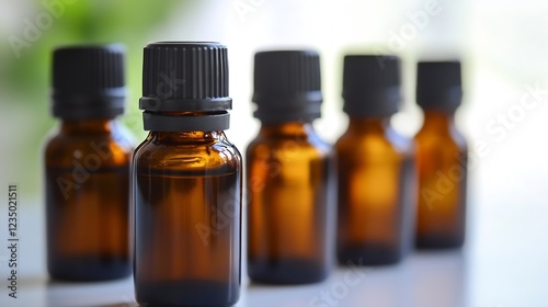 Set of Brown Glass Essential Oil Bottles for Aromatherapy Use : Generative AI