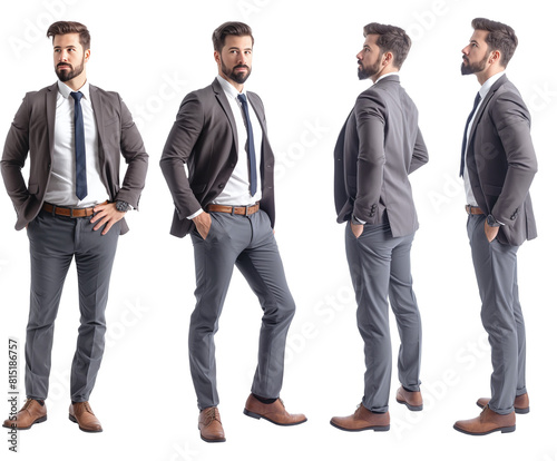 Set of business Man with natural face beauty, 25 years old, three side view, cut out
