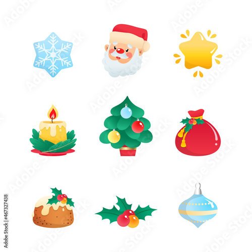 christmas, icon, vector, set, collection, winter, holiday, santa, fir, tree, pine, bag, candle, ball, snowflake, star, cartoon, symbol, sticker, cute, cosy, home, kit, festive, decoration, traditional, funny, sweet, cheerful, december, new year, eve, celebration, seasonal, children, children, illustration, isolated, white background, invitation, template