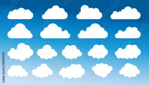 cloud, vector, icon, shape, sky, cartoon, background, white, flat, bubble, blue, summer, cloudy, abstract, isolated, space, set, symbol, web, weather, air, day, art, heaven