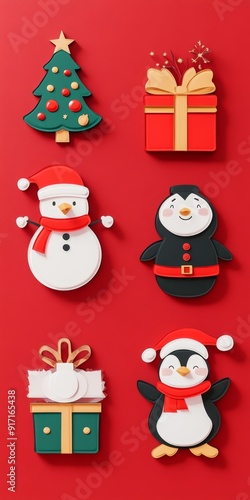 set, christmas, illustration, sticker, decoration, decor, isolated, background, tree, snowman, ornament, decoration, santa, red, green, white, gift, holiday, festive, holiday decorations, seasonal, christmas ornament, decorative, winter, christmas design, christmas decoration, holiday season